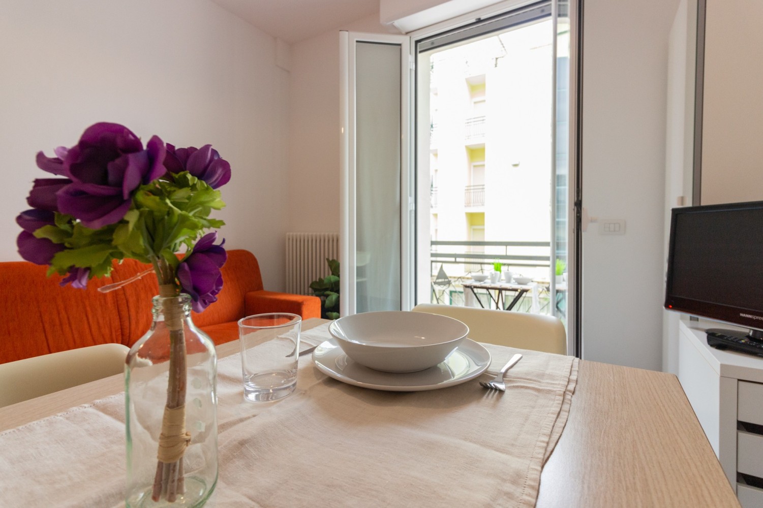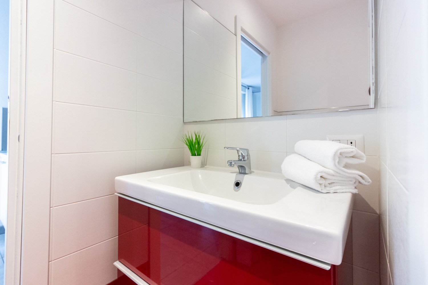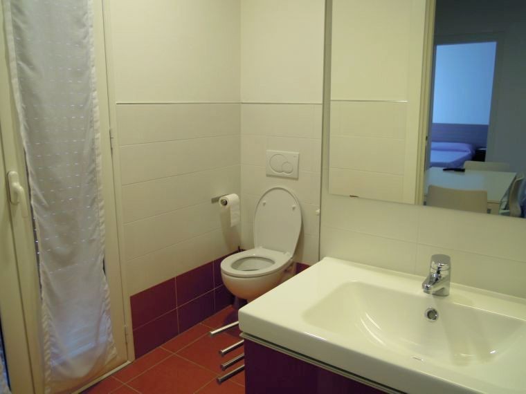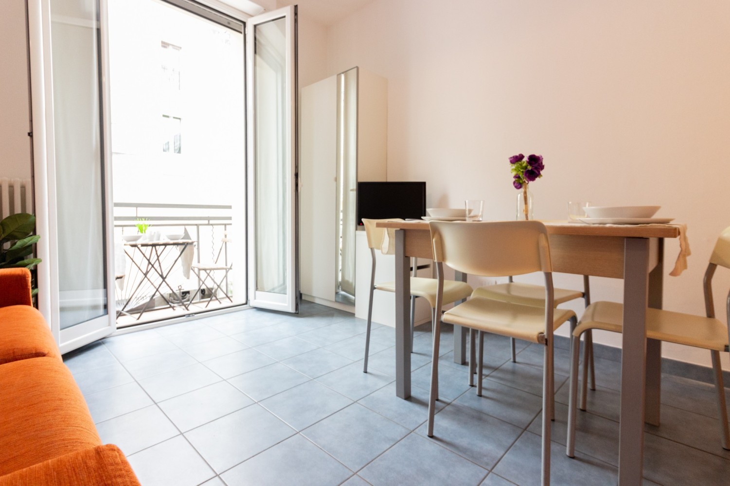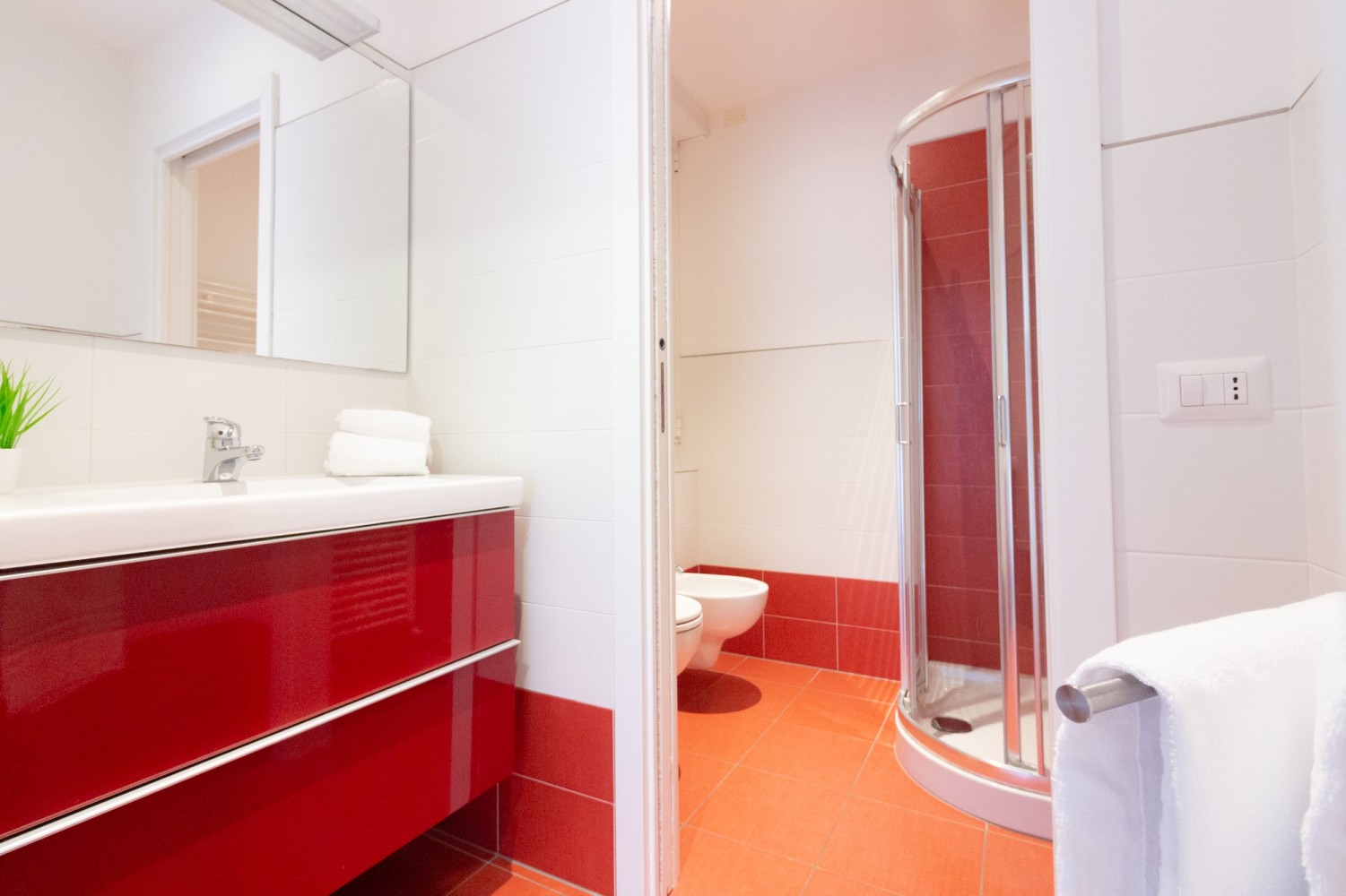 Composto da una camera matrimoniale con letto a castello, un soggiorno con divano letto e cucina attrezzata, un bagno moderno, con antibagno e box doccia, e balcone.
