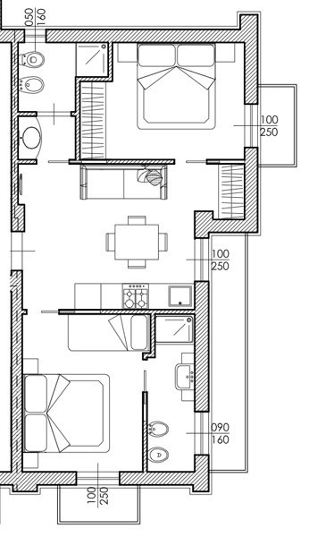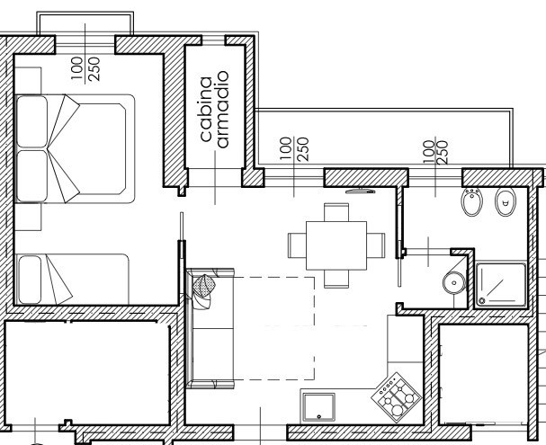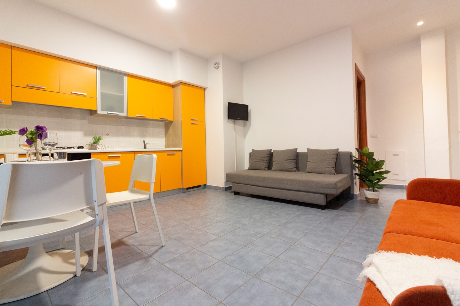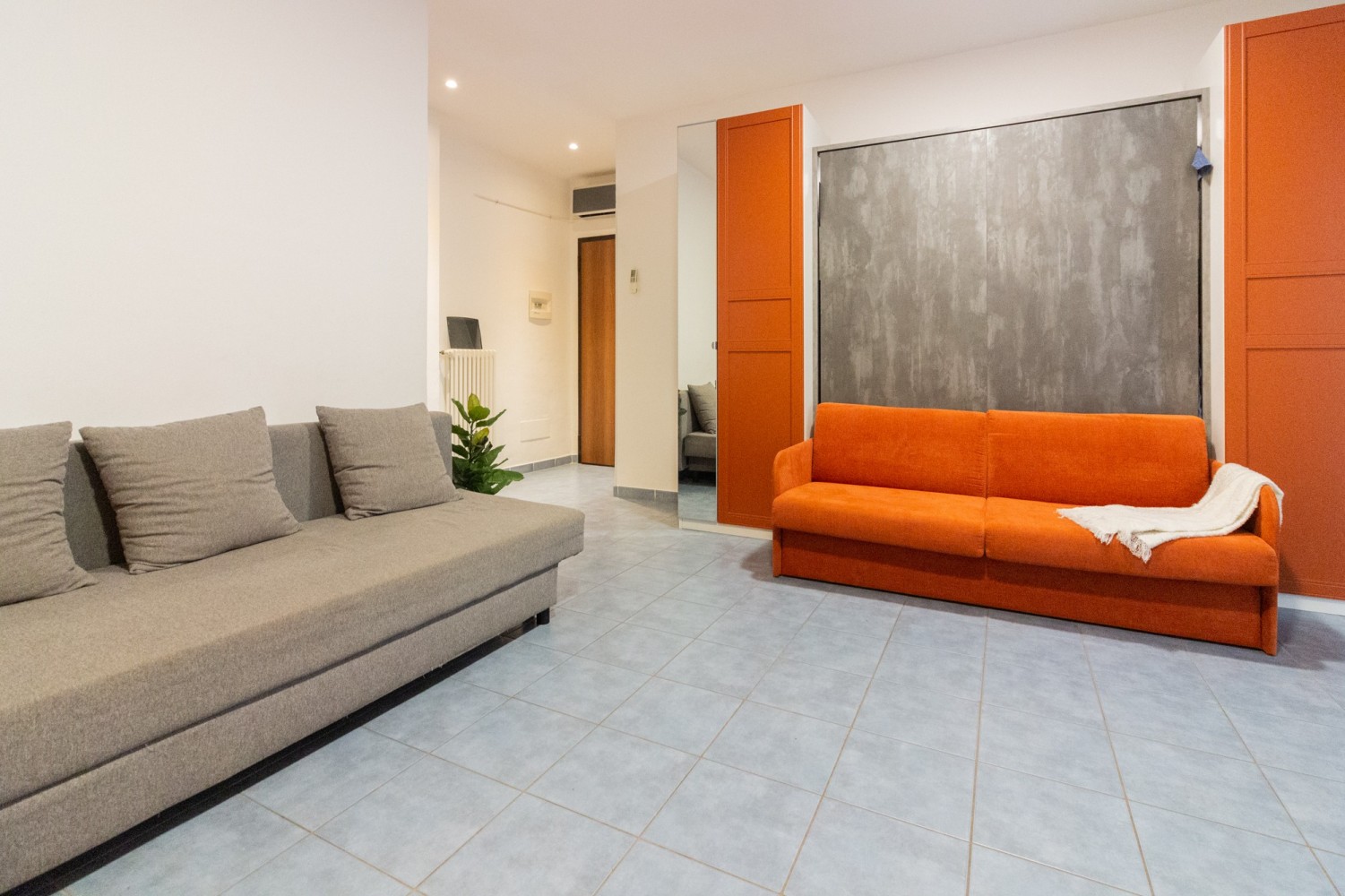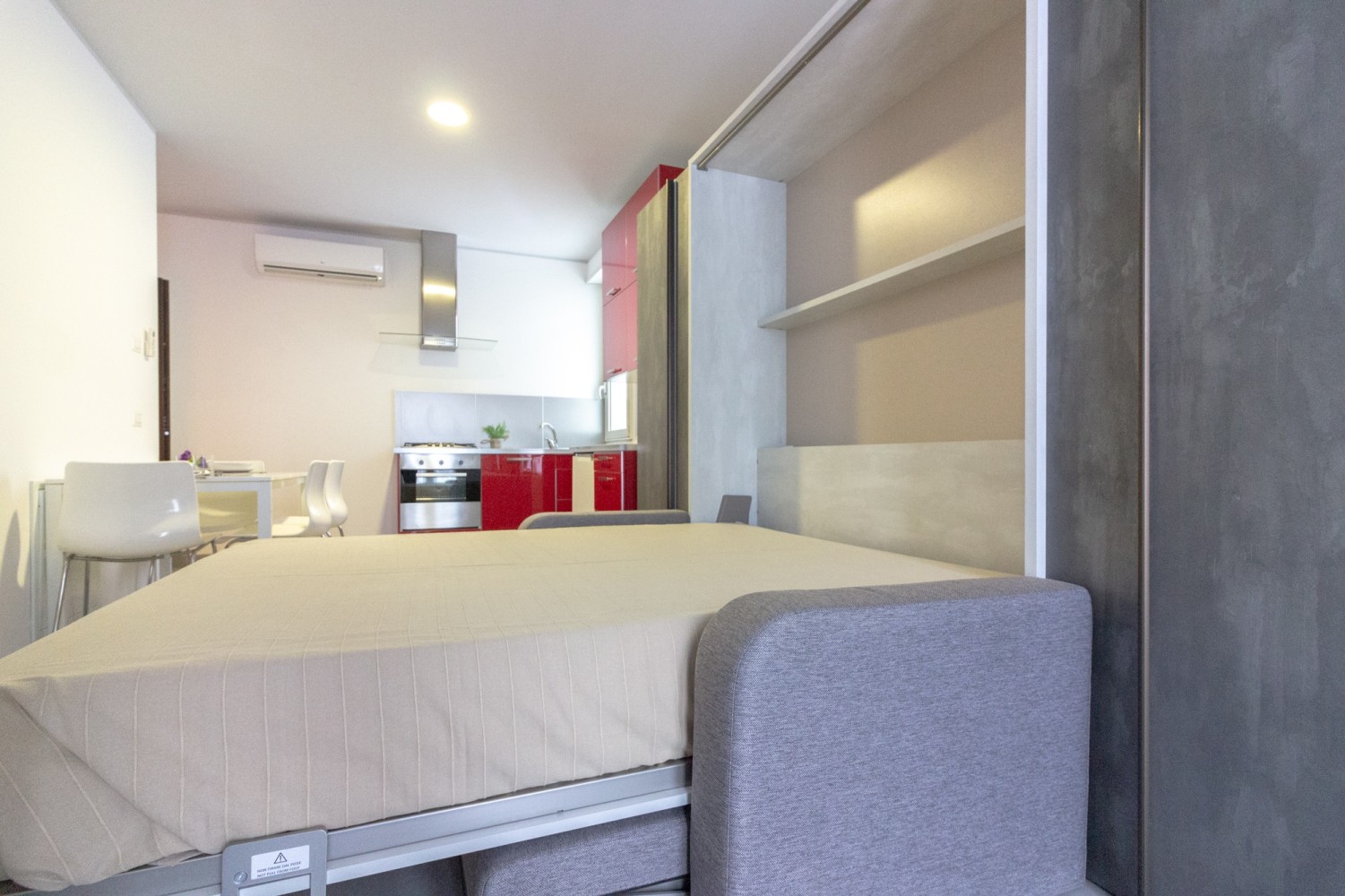 Composto da camera matrimoniale con bagno privato, soggiorno con letto matrimoniale a scomparsa e divano letto, cucina attrezzata, secondo bagno e disimpegno.