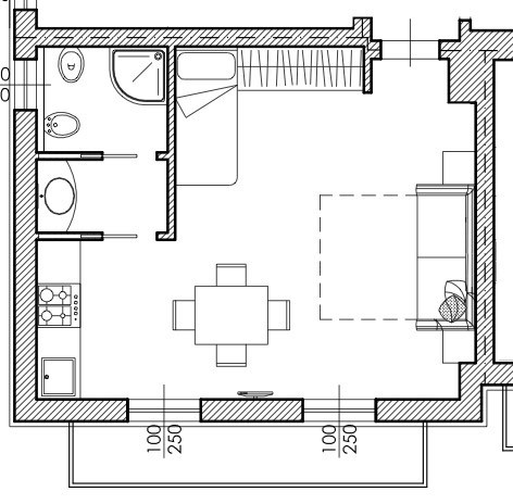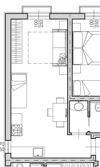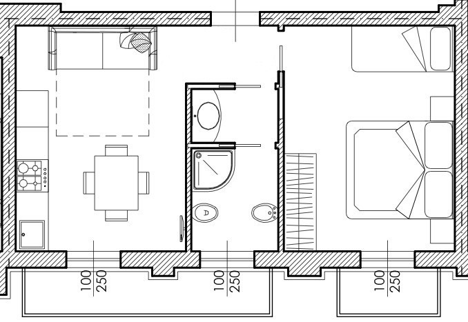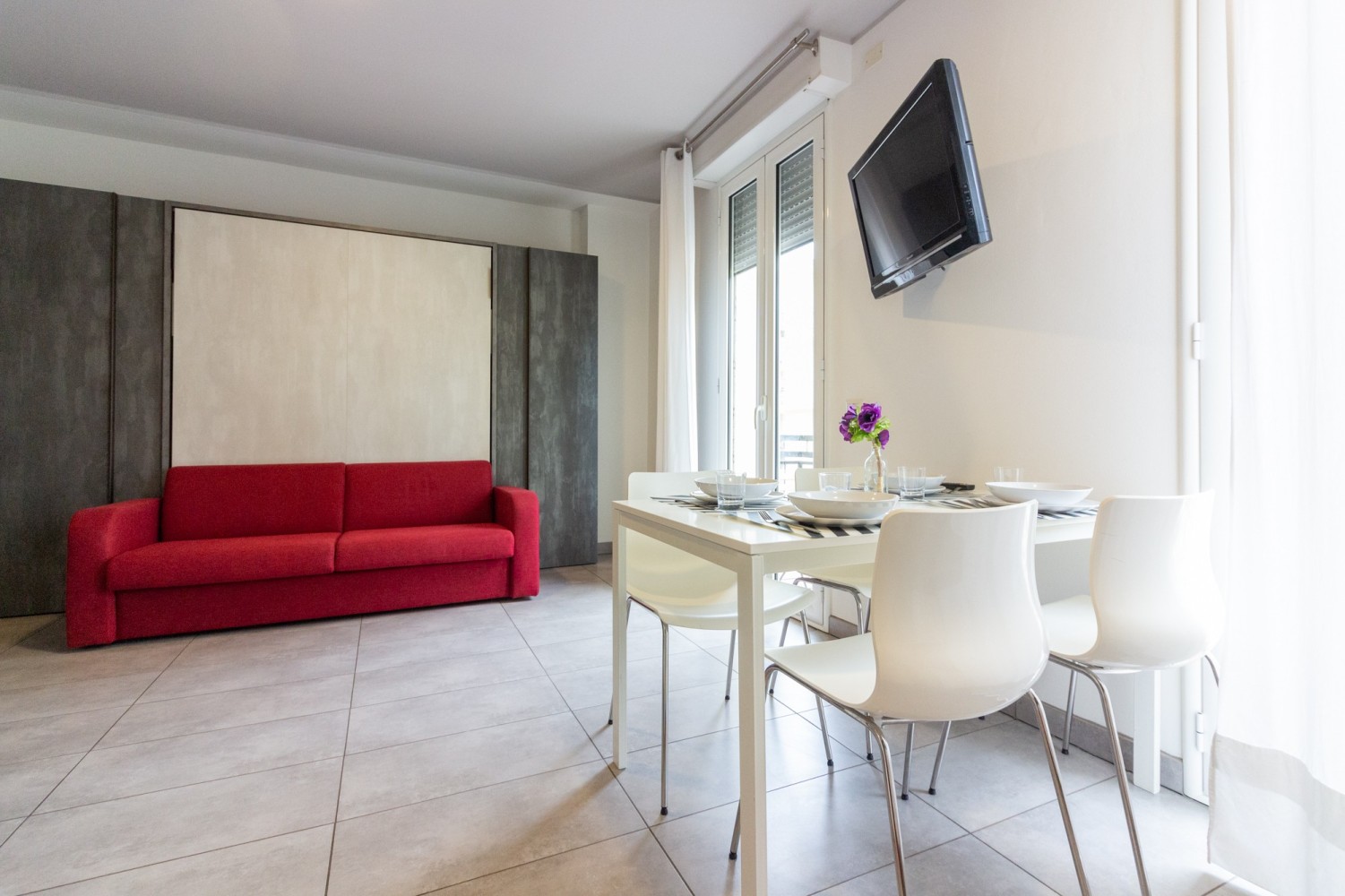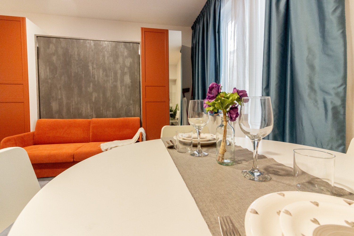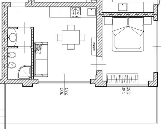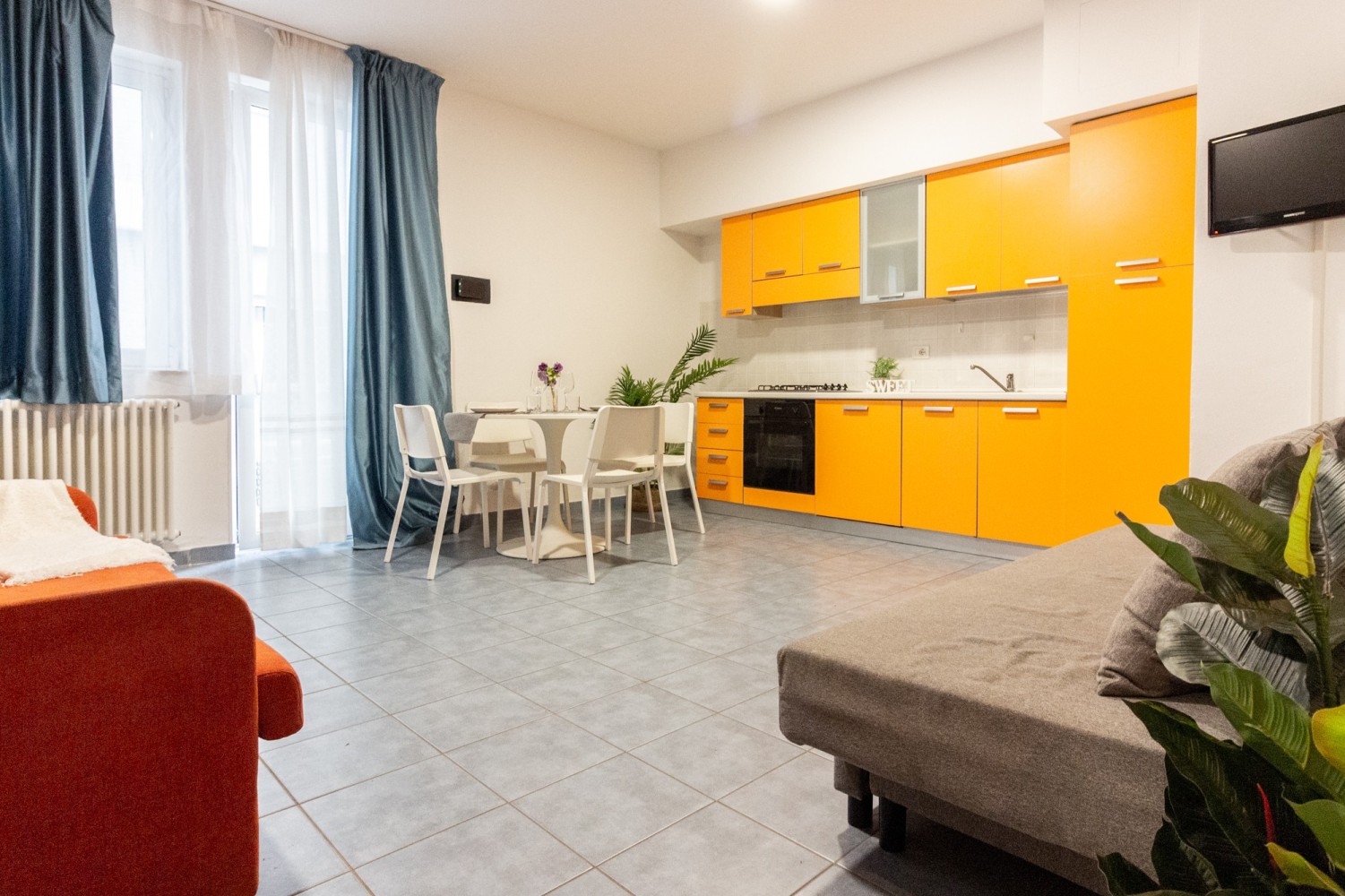 Composto da camera matrimoniale con bagno privato, soggiorno con letto matrimoniale a scomparsa e divano letto, cucina attrezzata, secondo bagno e disimpegno.