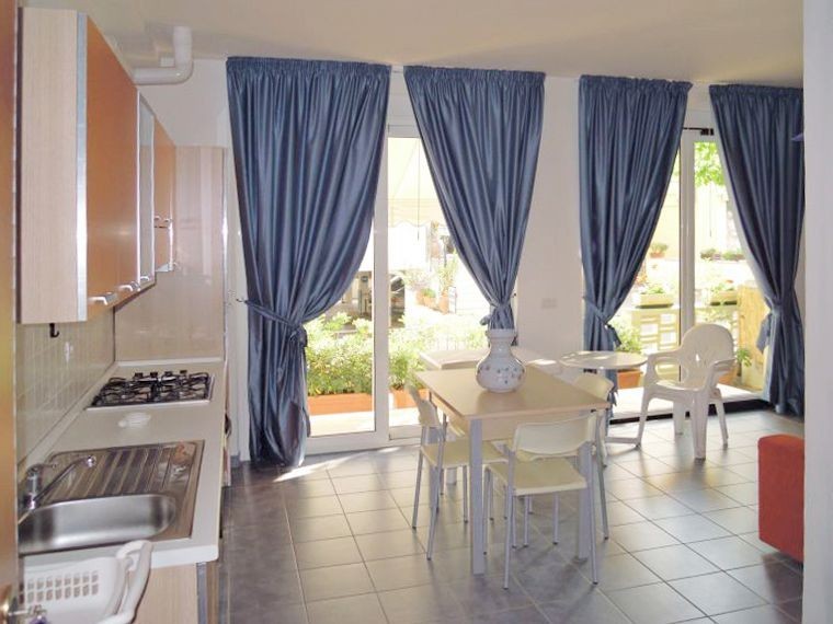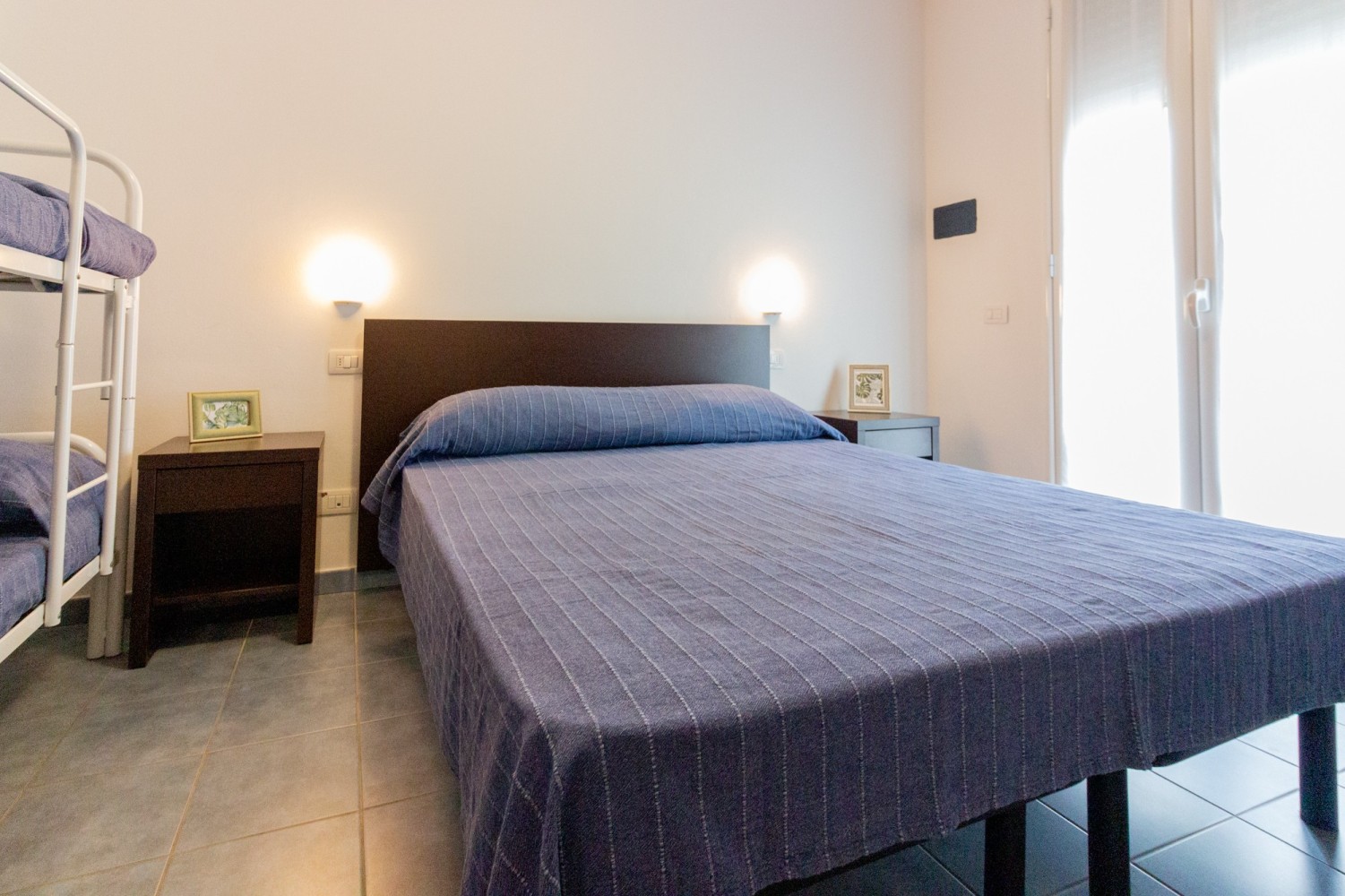 Composto da un soggiorno con letto matrimoniale a scomparsa, letto a castello, cucina attrezzata e bagno privato con box doccia.