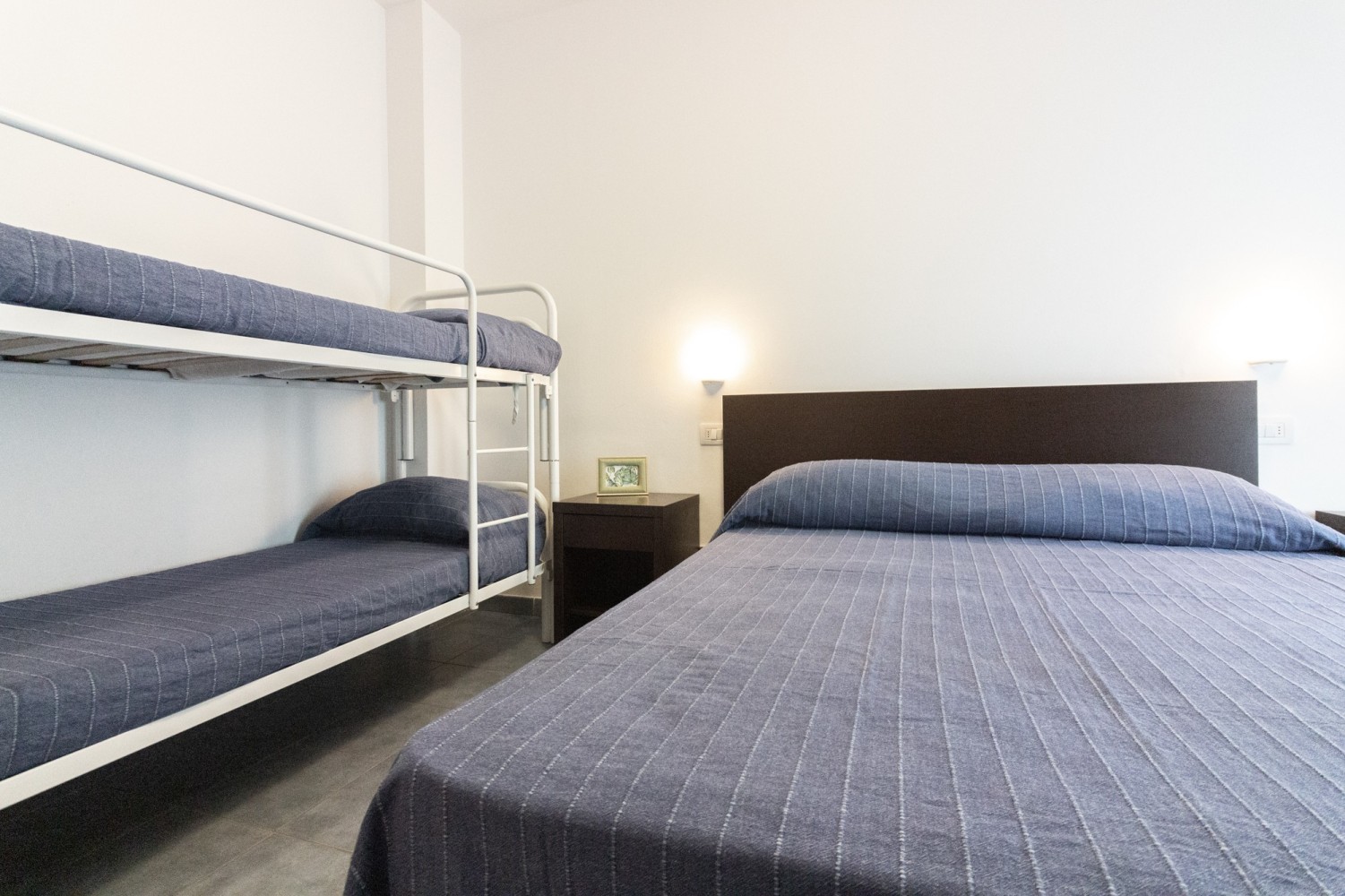 Composto da un soggiorno con letto matrimoniale a scomparsa, letto a castello, cucina attrezzata, bagno privato con box doccia e balcone.