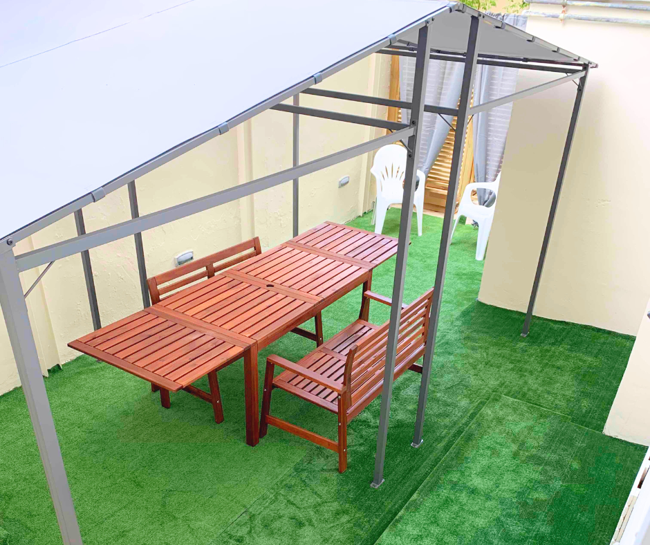 Situato al piano terra è composto da una camera matrimoniale, un soggiorno con letto matrimoniale a scomparsa e un bagno moderno con antibagno e box doccia. In più dispone di terrazza esterna privata con tavolo, sedie e lettini prendi sole.
