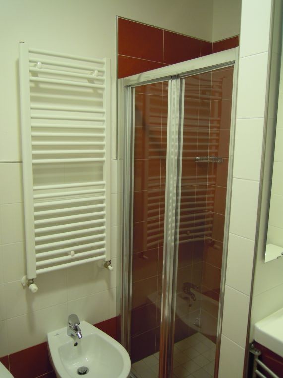 Soggiorno angolo cottura attrezzato, due camere matrimoniali, doppi servizi con antibagno e box doccia. Dispone di balcone