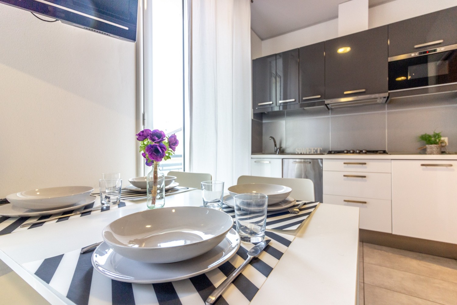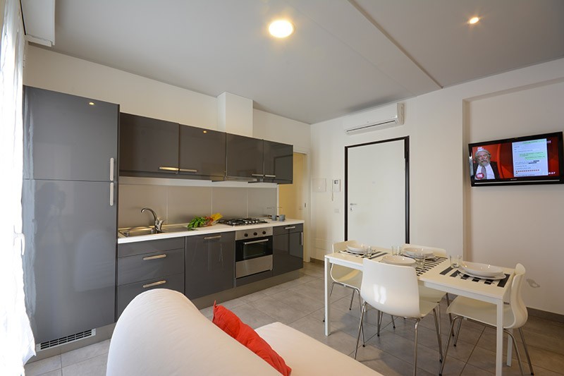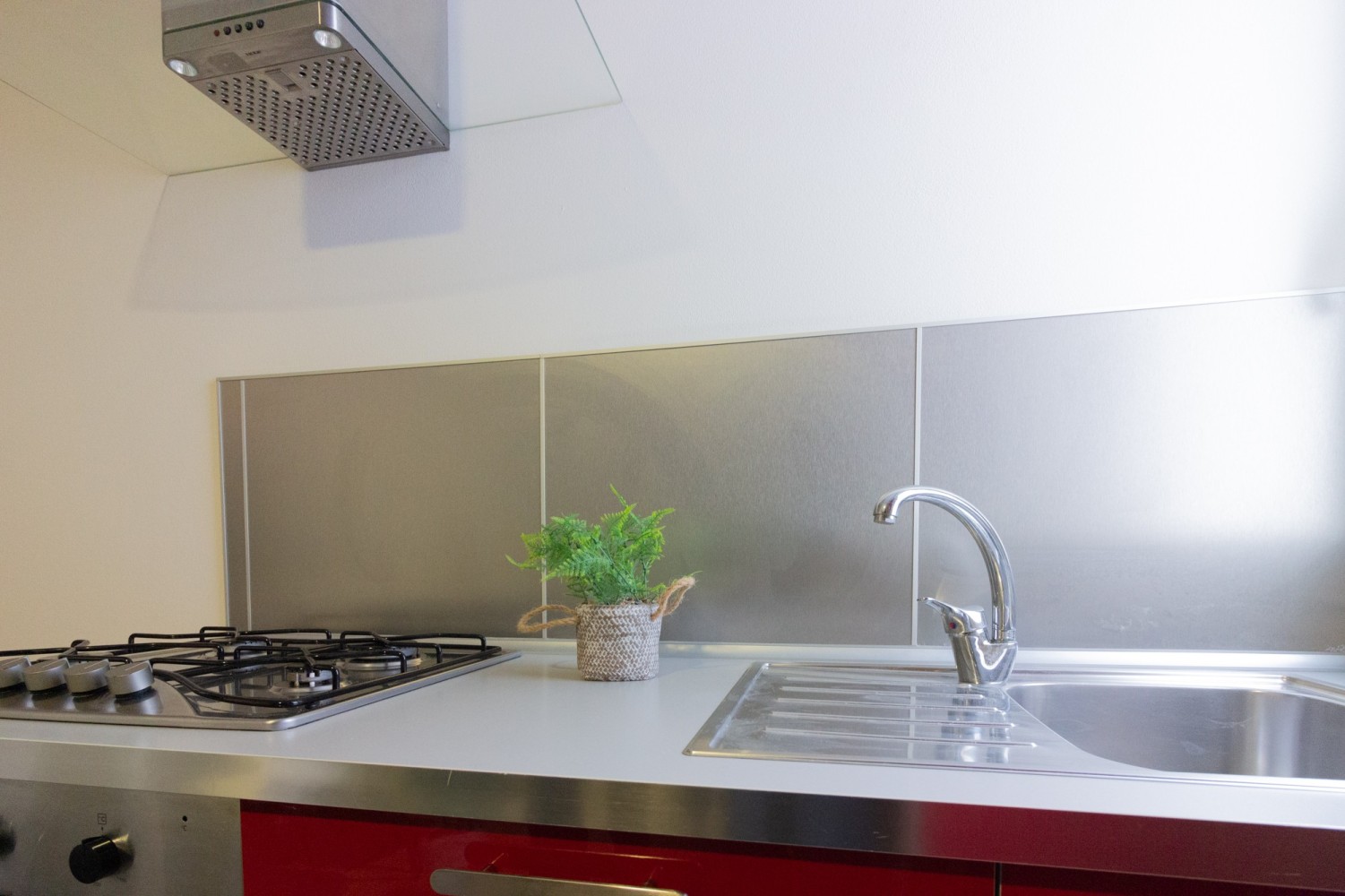 Piano cottura a Gas - Frigorifero con freezer - Lavastoviglie - Microonde - Set di cortesia